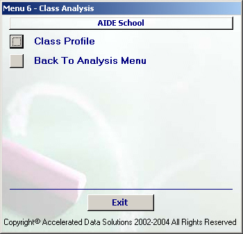 This section focuses on a individual class. It is geared off course and section number. Note the SSR and SSM sections in the Class Profile. These calculations are based on the average of the classes' assigned student load. AIDE Variables denote the total assigned to the class. |